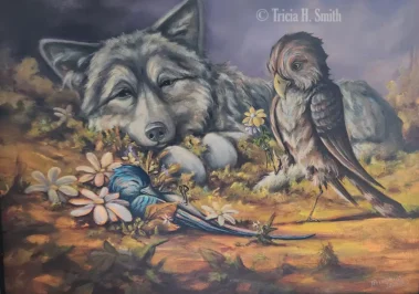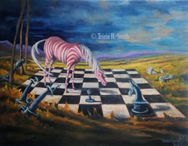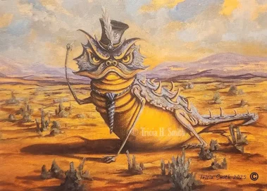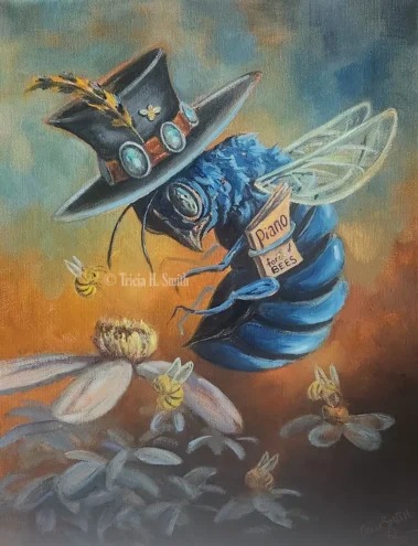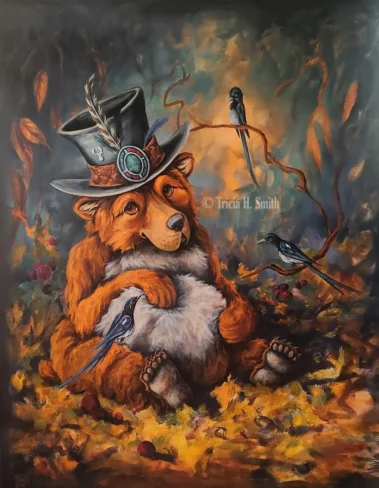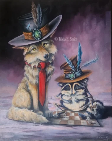 I’ve been painting for over 20 years, thanks to my children. Any time there are three of the same creatures in my paintings, they represent my children loaned to me. The occupation I chose is definitely child’s play, although being a responsible child is definitely a challenge.