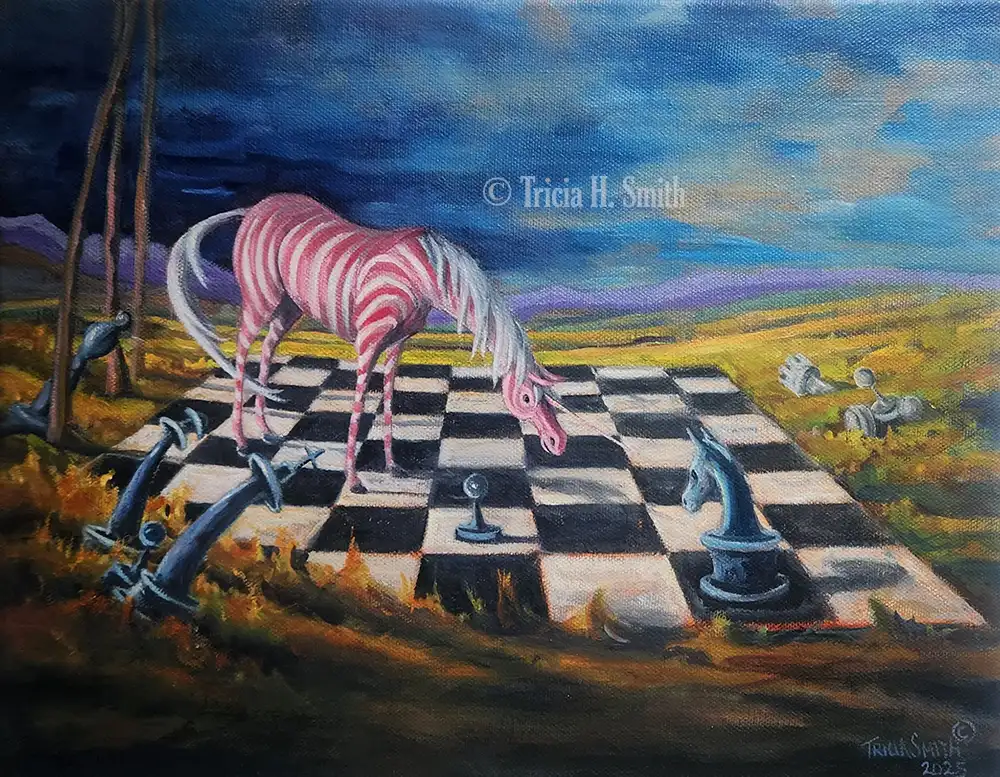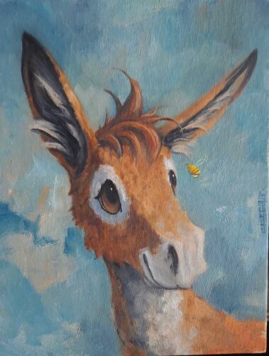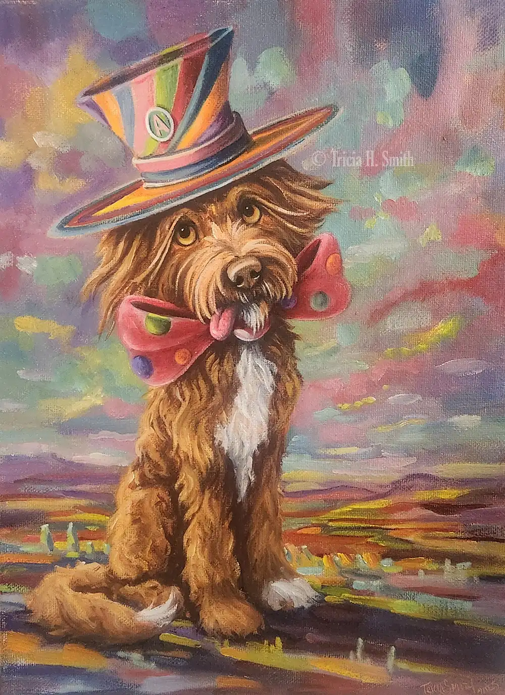 I’ve been painting for over 20 years, thanks to my children. Any time there are three of the same creatures in my paintings, they represent my children loaned to me. The occupation I chose is definitely child’s play, although being a responsible child is definitely a challenge.